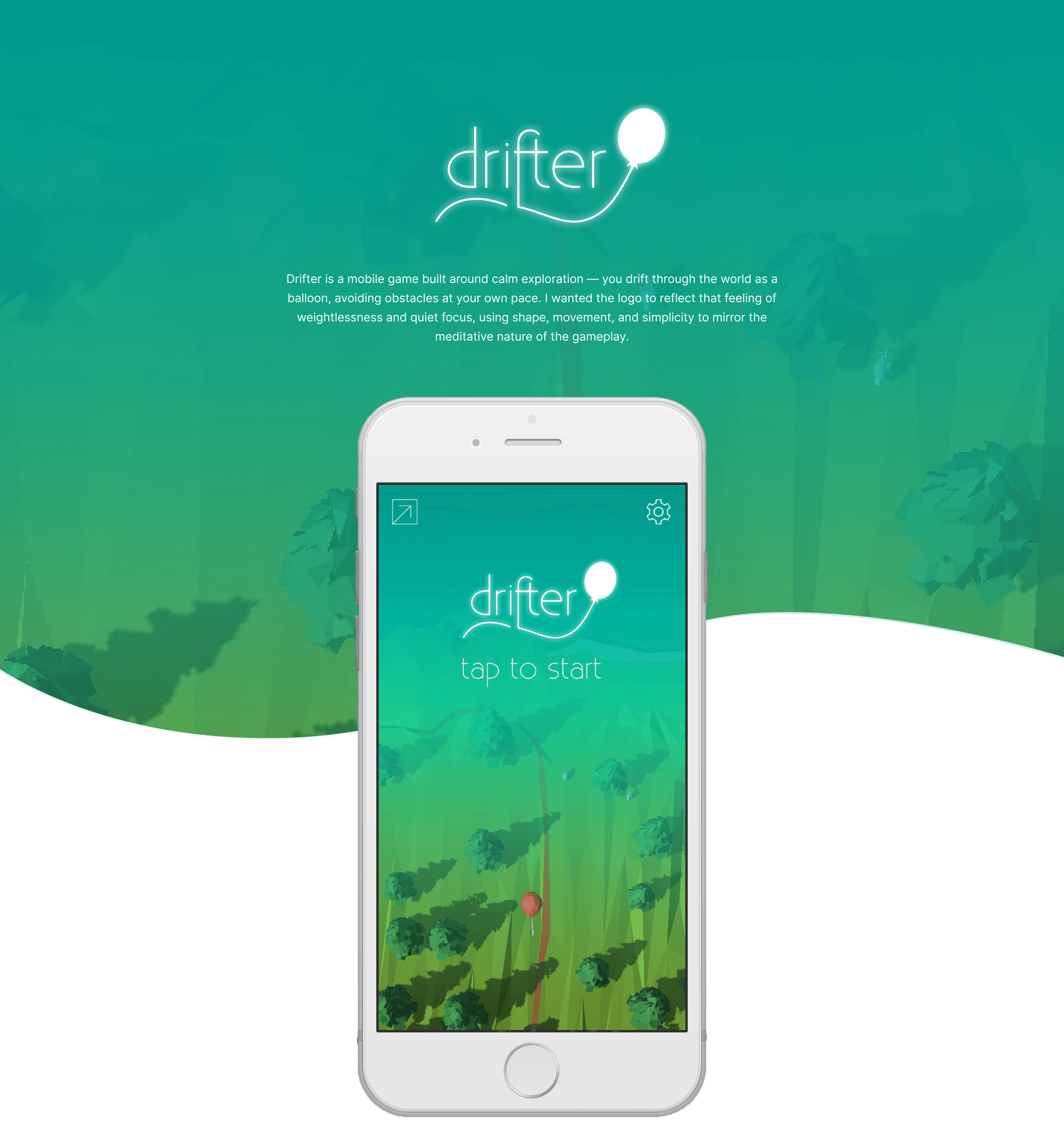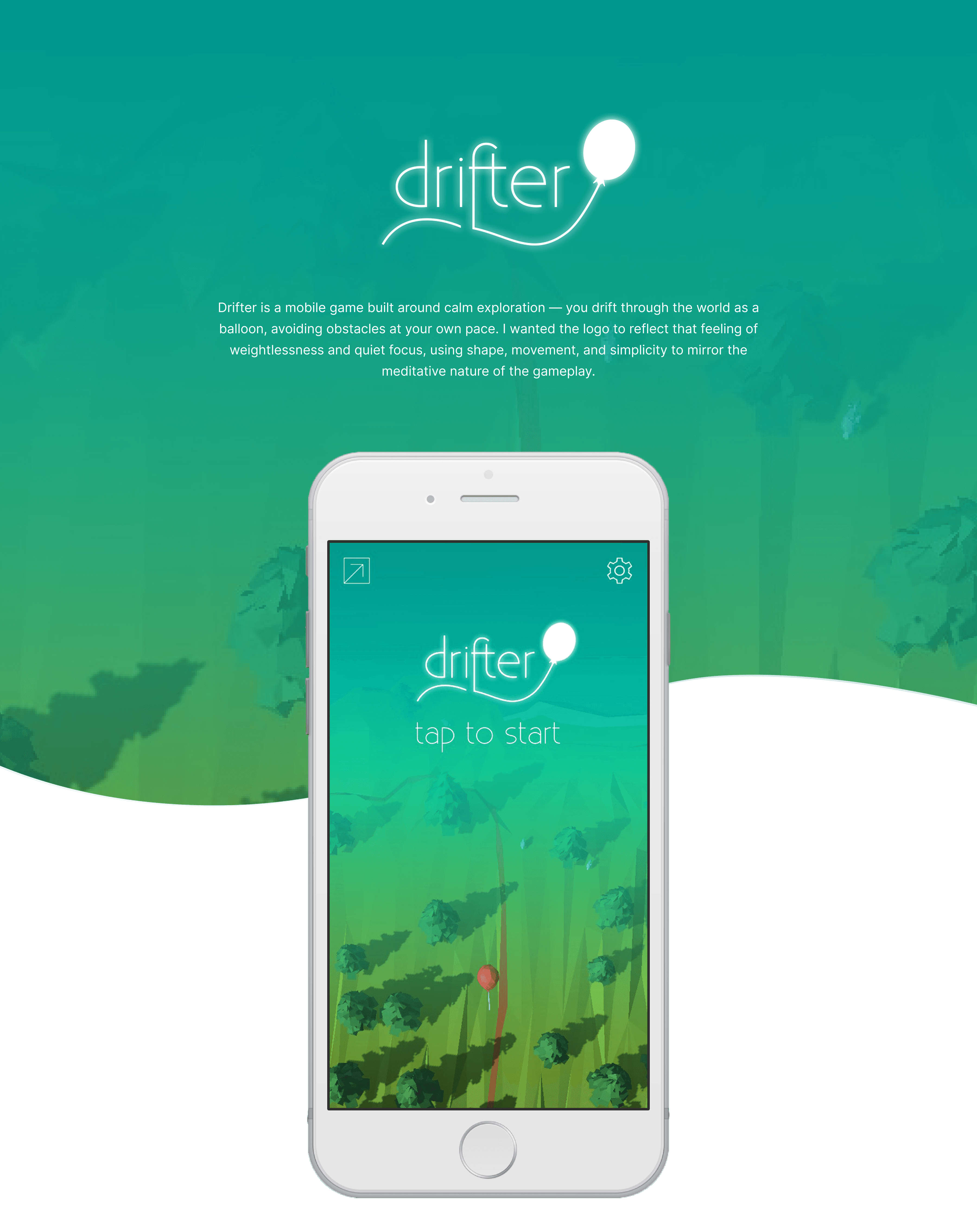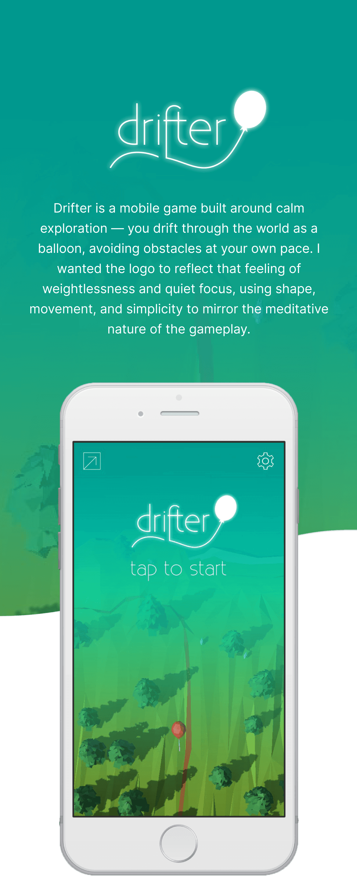 The typography was designed to feel light and airborne—echoing the drifting, floating mechanics at the heart of the game. The letterforms stretch gently toward the balloon, creating a seamless sense of lift and continuity. A soft gradient behind the logo adds just enough contrast to keep it readable against the game’s vibrant color palette.
