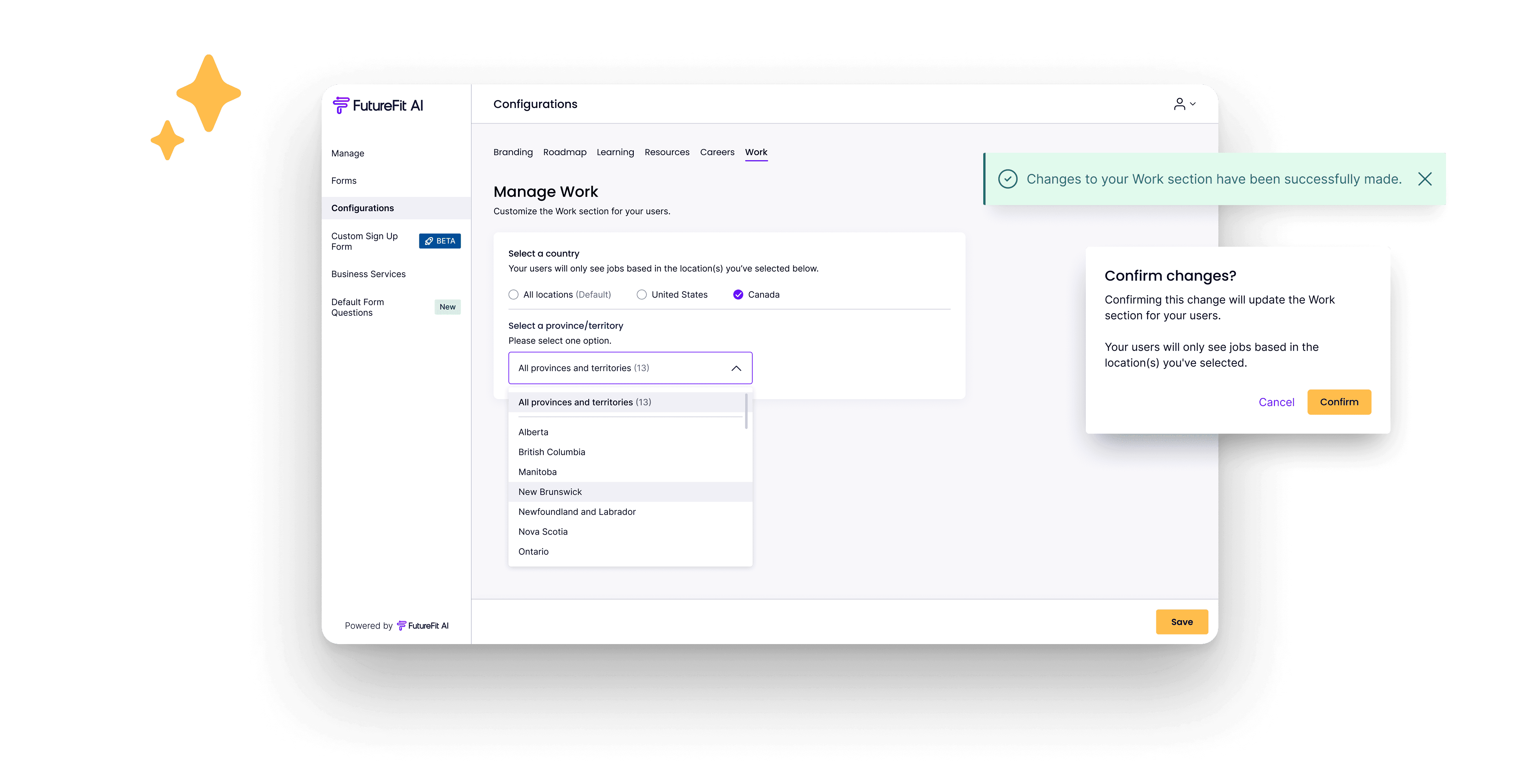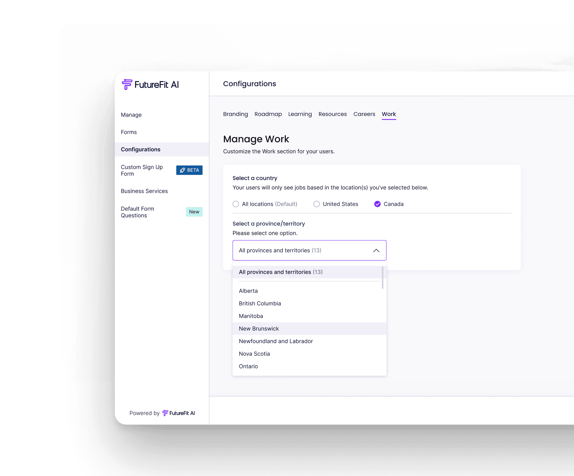 → Customers choose a visibility region (US, Canada, or a specific state/province) to control which locations appear to their job seekers